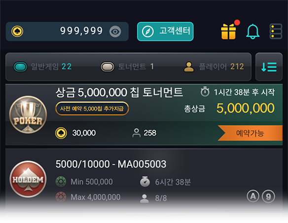 포커클럽 토너먼트는 매일 저녁시간에 진행됩니다. 단체방 공지로 토너먼트 참가시간을 확인해보세요.