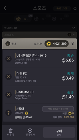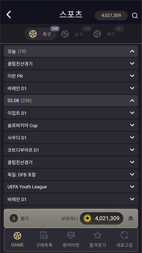 스포츠 게임은 본 아이디(처음 생성 아이디)로만 진행 가능합니다.