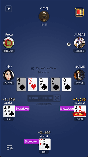 포커클럽에서는 동일한 전화번호로 최대 6개의 아이디를 생성가능합니다. 여러 아이디를 이용하여 동시에 여러 테이블에 참여하실 수 있습니다.