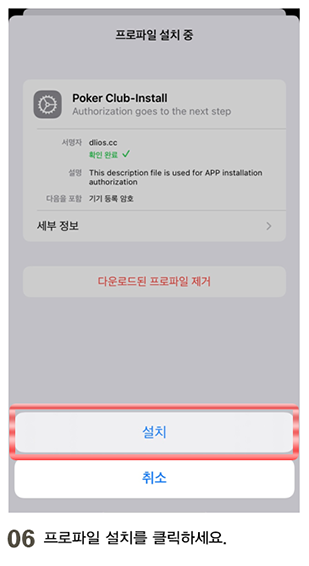 - 04포커클럽 프로파일 선택 후 프로파일 설치 클릭하세요